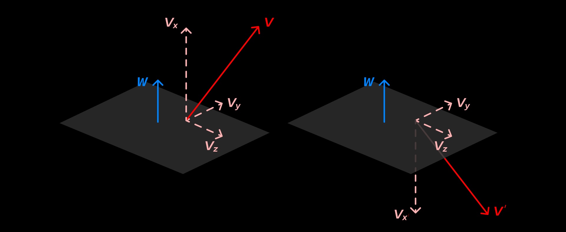 将 v 分解到一组正交基 {vx,vy,vz} 上, 同时保证 vx=w。这样的分解使得: