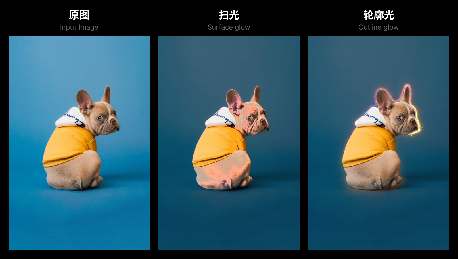 到这里合成所需的所有要素都已准备齐全。我们将描边和发光的效果合成到原图上, 并且根据光照的进度 来调整描边和发光的效果, 同时加上一些粒子效果来增加画面的动感。
