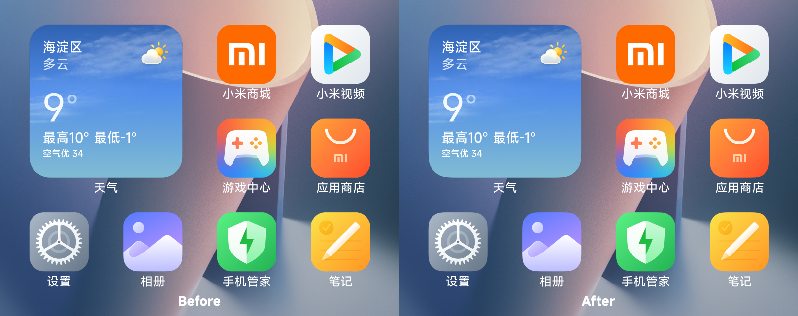 经过三个团队一年多的努力, 平滑圆角正式进入 Hyper OS 1.0 系统固件。向4亿小米个人终端用户分发。