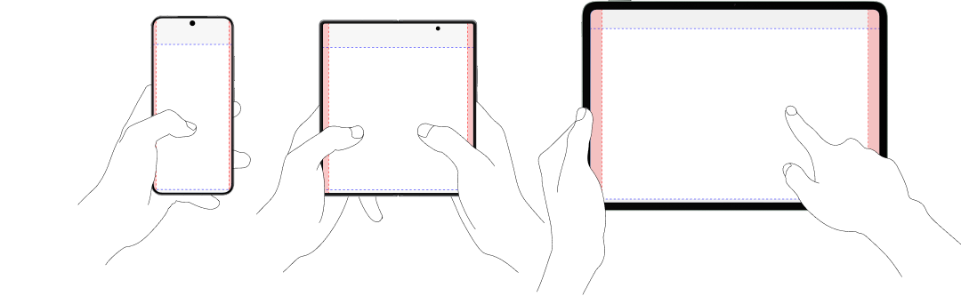 这三种设备分别对应了三种用户使用场景, 分别对应了三种不同的防误触边距。