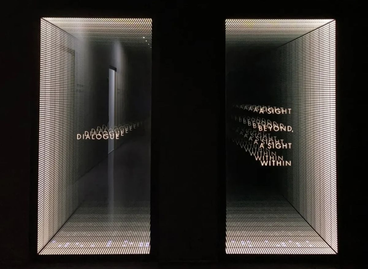 灵感来自于上图展示的这种常见的视觉装置。它使用两片单面反射玻璃, 通过多次反射光源制造出限延伸的视觉效果。 如果从不同角度观察, 看到的效果也会不同, 就像真的深渊一样。